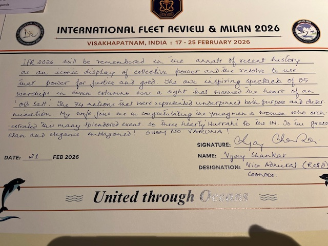 V Adm Vijay Shankar (retd) 21 Feb 2026 (Extracts from IFR & MILAN Visitors Book)
