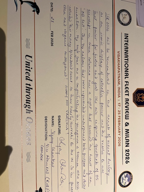 V Adm Vijay Shankar (retd) 21 Feb 2026 (Extracts from IFR & MILAN Visitors Book)